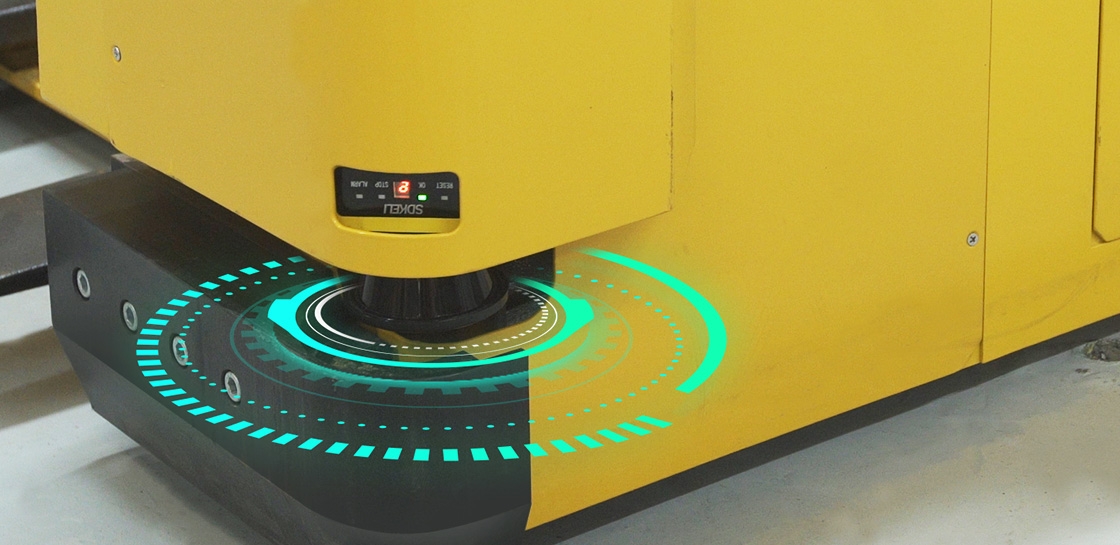 基于三輪協(xié)調(diào)的全向移動(dòng)底盤技術(shù),相比雙舵輪方式,該方法很好的解決了地面接觸問(wèn)題,同時(shí)輪子維護(hù)也很方便,顯著降低了AGV產(chǎn)品的轉(zhuǎn)彎半徑。