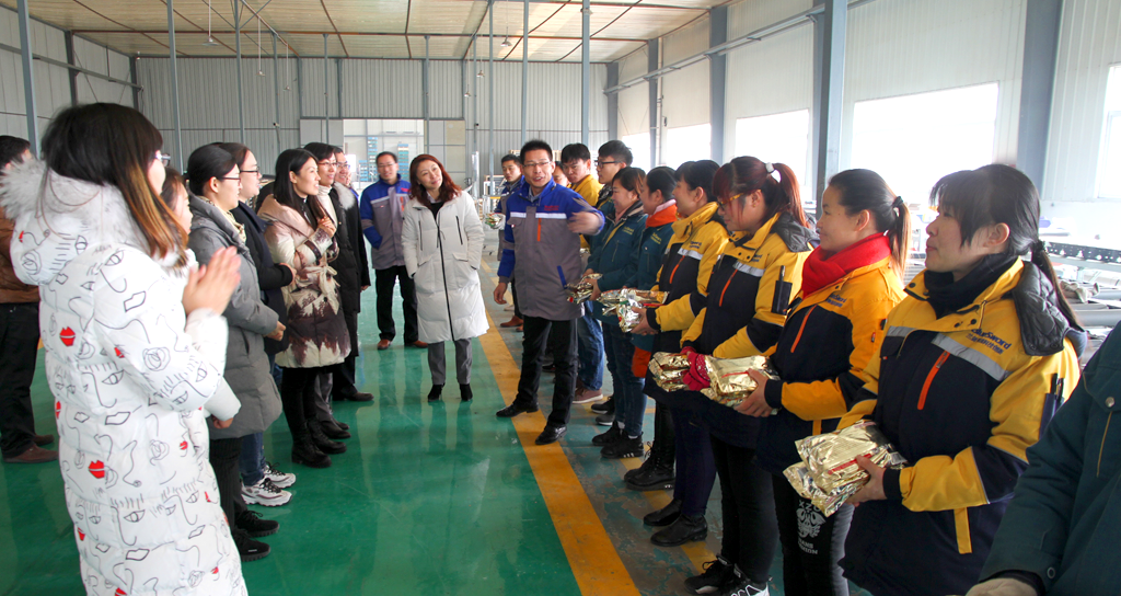 2017年12月28日,蘭劍總部高管攜管理人員到訪蘭劍生產(chǎn)研發(fā)基地展開慰問,并送上新年祝福及禮物。