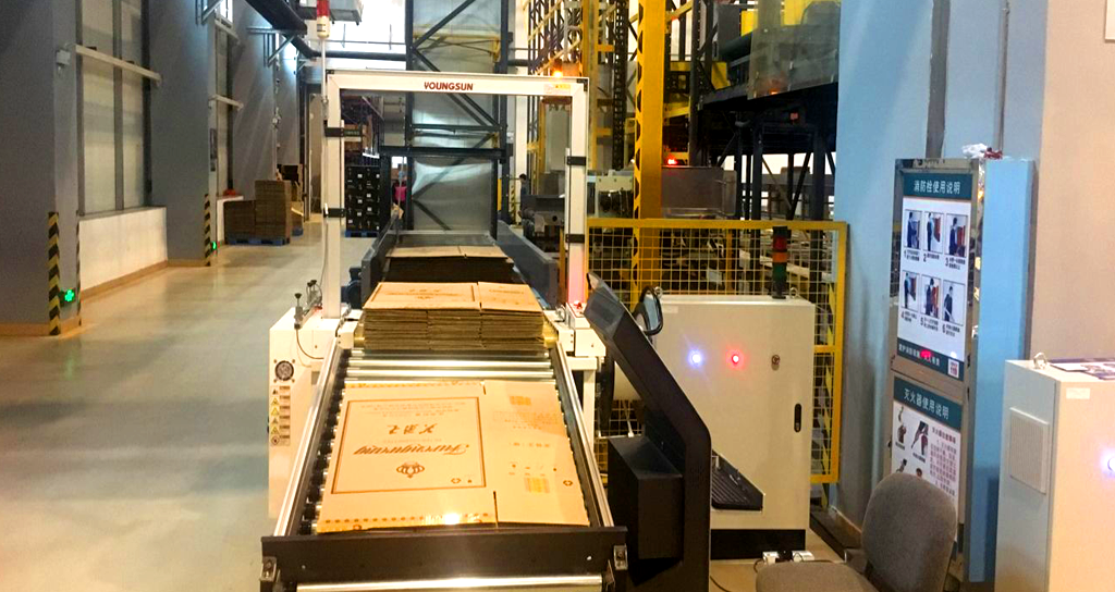 空煙箱回收系統(tǒng)主要由皮帶輸送線、碼垛機器人、高速運載小車、智能分揀系統(tǒng)、智能分揀小車、智能揀選分揀堆垛機、全自動打包機等主要設(shè)備組成。系統(tǒng)采用先進的全自動設(shè)備及智能控制系統(tǒng),可高效實現(xiàn)全品規(guī)空煙箱的自動識別分類分揀工作,全自動打包作業(yè)裝盤,達到回收利用的目的,實現(xiàn)綠色環(huán)保物流。