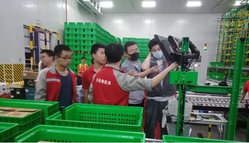 武漢解禁后,蘭劍技術人員再次入場對已安裝設備進行調試,爭分奪秒,繼續(xù)優(yōu)化。經過三個月試運行,百果園武漢倉自動化系統(tǒng)在綜合效率、設備可用度等方面均達到技術協(xié)議要求,多穿系統(tǒng)整體出入庫效率達2300箱/小時。